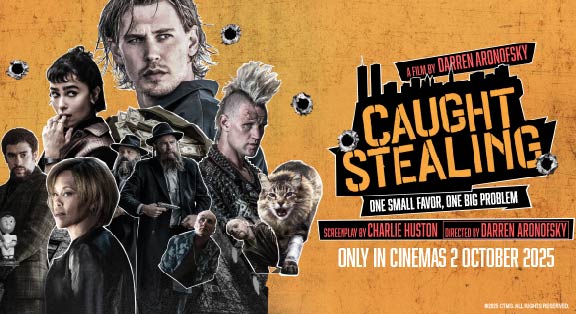Caught Stealing is directed by Academy Award® nominee Darren Aronofsky, screenplay by Charlie Huston, based on his book of the same name. The film stars Austin Butler, Regina King, Zoë Kravitz, Matt Smith, Liev Schreiber, Vincent D’Onofrio, Griffin Dunne, Benito A Martínez Ocasio, and Carol Kane.